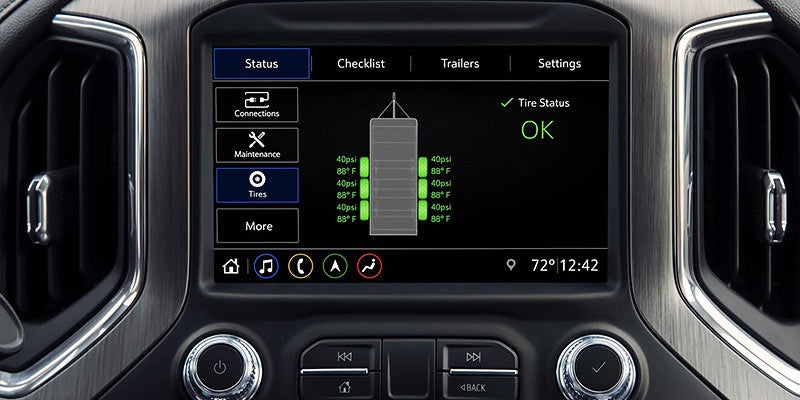 The available Tire Pressure Monitoring4 feature, available with Sierra’s ProGradeTM Trailering system5, gives you real-time updates on the status of your trailer’s tires to help improve your trailering experience and give you more confidence during long hauls.