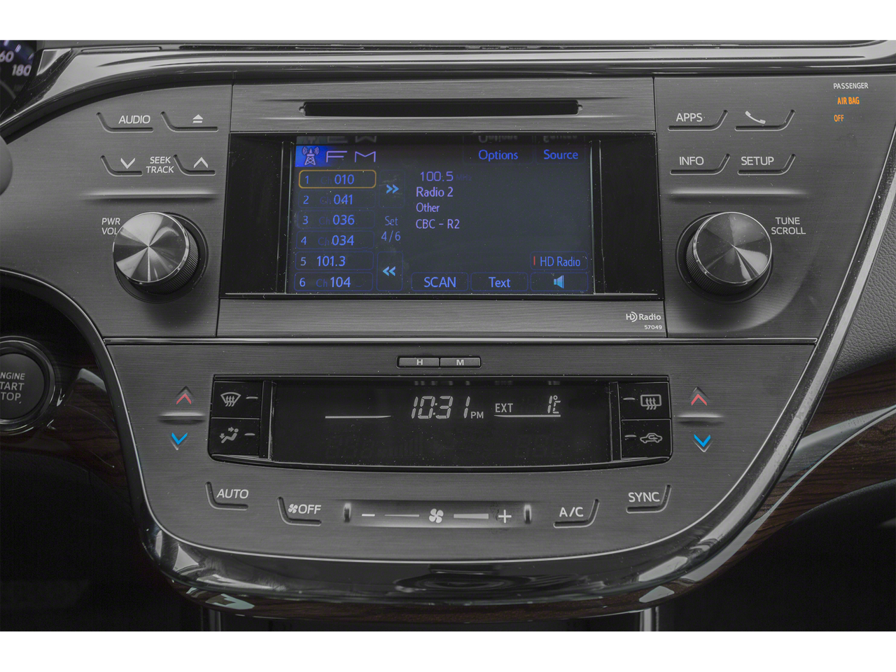 - Radio: Entune Audio Plus AM/FM/CD/MP3/WMA Playback -inc: 6.1-inch high resolution touch-screen display, 8 speakers, auxiliary audio jack, USB port w/iPod connectivity and control, advanced voice recognition, hands-free phone capability, phone book access and music streaming via Bluetooth® wireless technology, SiriusXM Radio w/3-month complimentary trial, HD Radio and HD traffic and weather in major metro areas, Integrated Backup Camera Display w/Projected Path