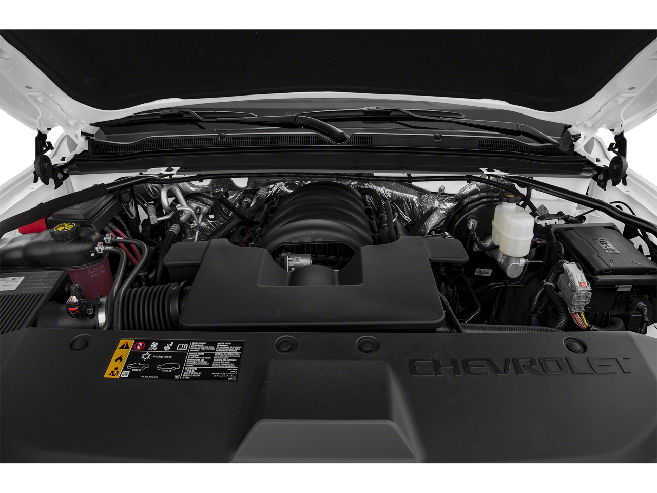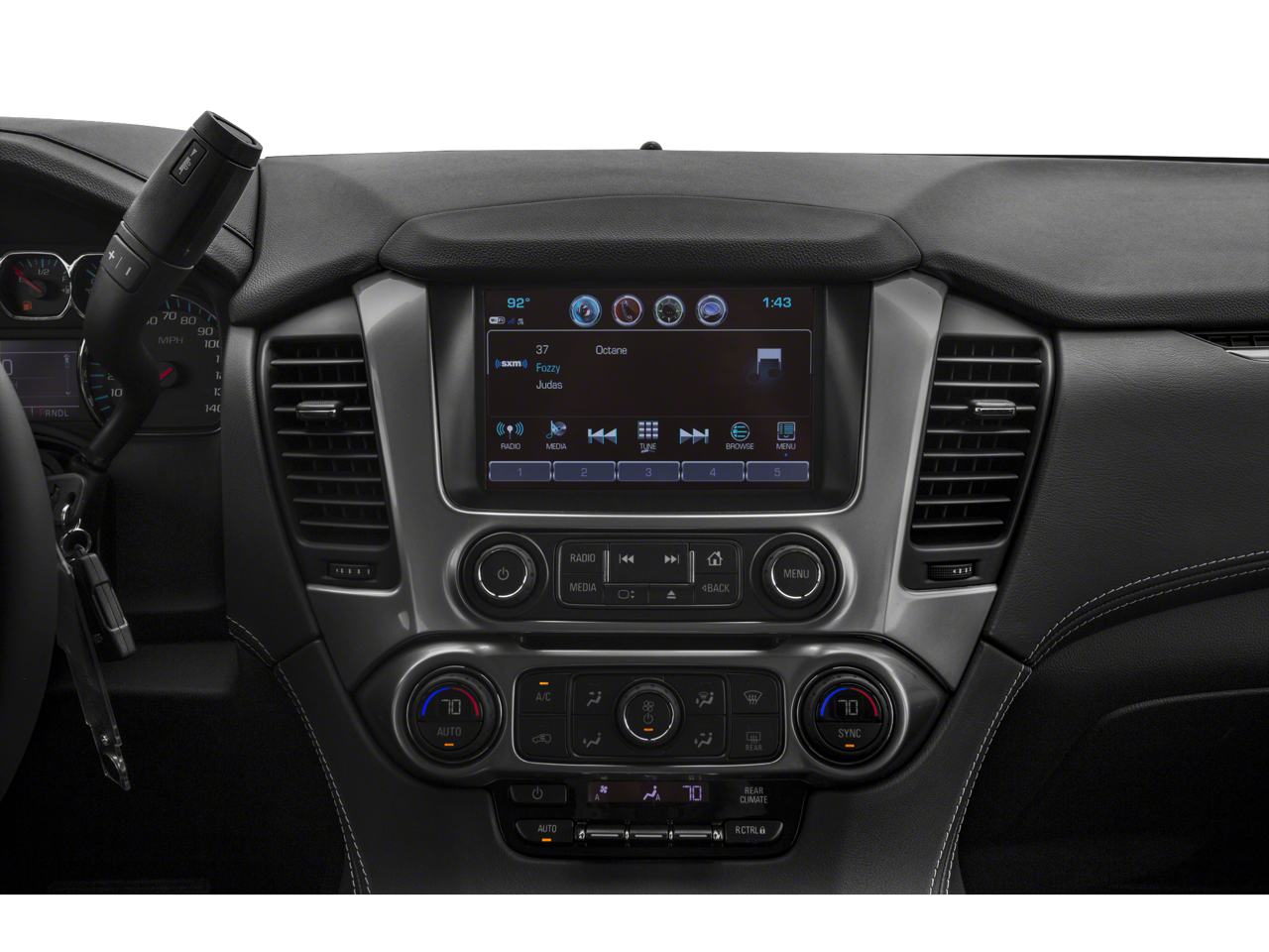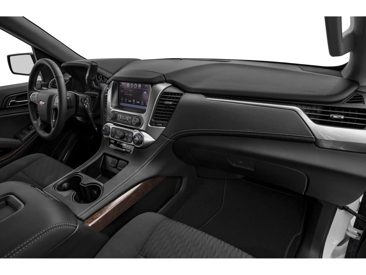 SUN, ENTERTAINMENT AND DESTINATIONS PACKAGE, (CF5) power sunroof, (U42) rear seat DVD entertainment system and (IO6) Chevrolet MyLink radio with navigation, 22 (55.9 CM) 6-SPOKE CHROME WHEELS, LUXURY PACKAGE includes additional 9 months of SiriusXM Radio, (AS8) power fold third row 60/40 split bench seats, (ATH) Passive Entry System, (ATT) second row power release 60/40 split folding bench seat, (BTM) keyless start, (DL3) outside heated power-adjustable, power-folding mirrors, (KA6) heated second row seats, (N38) memory power tilt and telescopic steering column, (TC2) Hands free liftgate, (T3U) fog lamps, (UD5) Front and Rear Park Assist, (UFG) Rear Cross-Traffic Alert, (UKC) Lane Change Alert with Side Blind Zone Alert and (UVD) heated steering wheel and color key rear fascia trailer hitch closeout, ENTERTAINMENT SYSTEM, REAR SEAT, BLU-RAY/DVD with remote control, overhead display, Wi-Fi wireless projection capability, two 2-channel wireless digital headphones, auxiliary HDMI/MHL audio/video input and 2 USB ports, SEATS, SECOND ROW BUCKET, POWER RELEASE, AUDIO SYSTEM, CHEVROLET MYLINK RADIO WITH NAVIGATION AND 8 DIAGONAL COLOR TOUCH-SCREEN AM/FM stereo with seek-and-scan and digital clock, includes Bluetooth® streaming audio for music and select phones; voice-activated technology for radio and phone; and Shop with the ability to browse, select and install apps to your vehicle. You can customize your content with audio, weather and more; featuring Apple CarPlay® and Android Auto® capability for compatible phone; 5 USB ports and 1 auxiliary jack, MIRRORS, OUTSIDE HEATED POWER-ADJUSTABLE, POWER-FOLDING AND DRIVER-SIDE AUTO-DIMMING with integrated turn signal indicators and ground illumination, ENGINE, 5.3L ECOTEC3 V8 WITH ACTIVE FUEL MANAGEMENT, DIRECT INJECTION AND VARIABLE VALVE TIMING includes aluminum block construction (355 hp [265 kW] @ 5600 rpm, 383 lb-ft of torque [518 N-m] @ 4100 rpm) (STD), TRANSMISSION, 6-SPEED AUTOMATIC, ELECTRONICALLY CONTROLLED with overdrive and tow/haul mode (STD), STEERING WHEEL, HEATED, LEATHER-WRAPPED AND COLOR-KEYED with theft-deterrent locking feature.