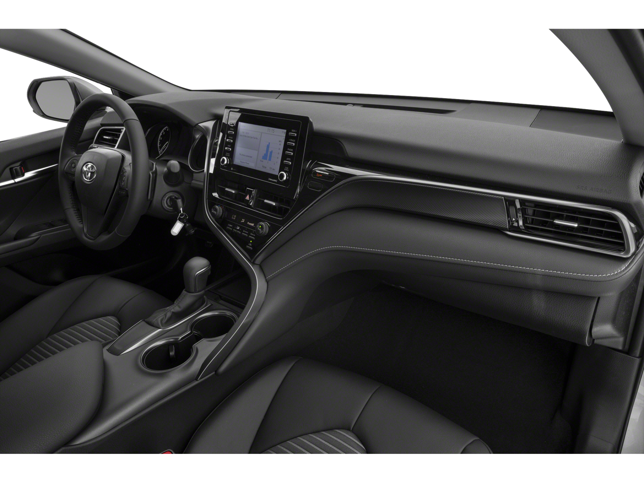 Cross-Traffic Alert, Blind Spot Monitor, Electronic Stability Control, Brake Assist, 4-Wheel ABS, Tire Pressure Monitoring System, 4-Wheel Disc Brakes Toyota SE with Blueprint exterior and Black interior features a 4 Cylinder Engine with 203 HP at 6600 RPM*.