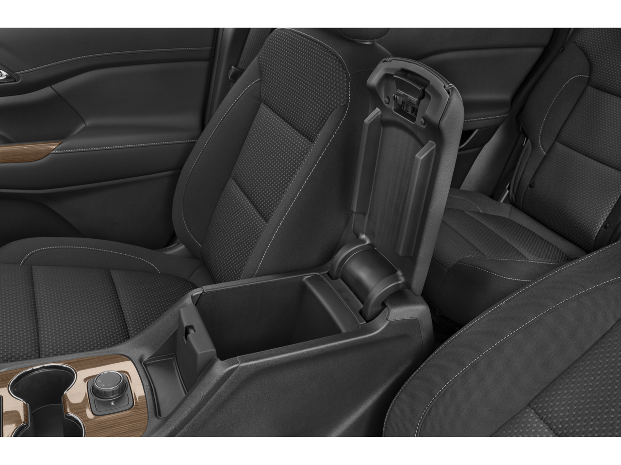 - Console, front center with 2 cup holders and storage, includes rear storage drawer