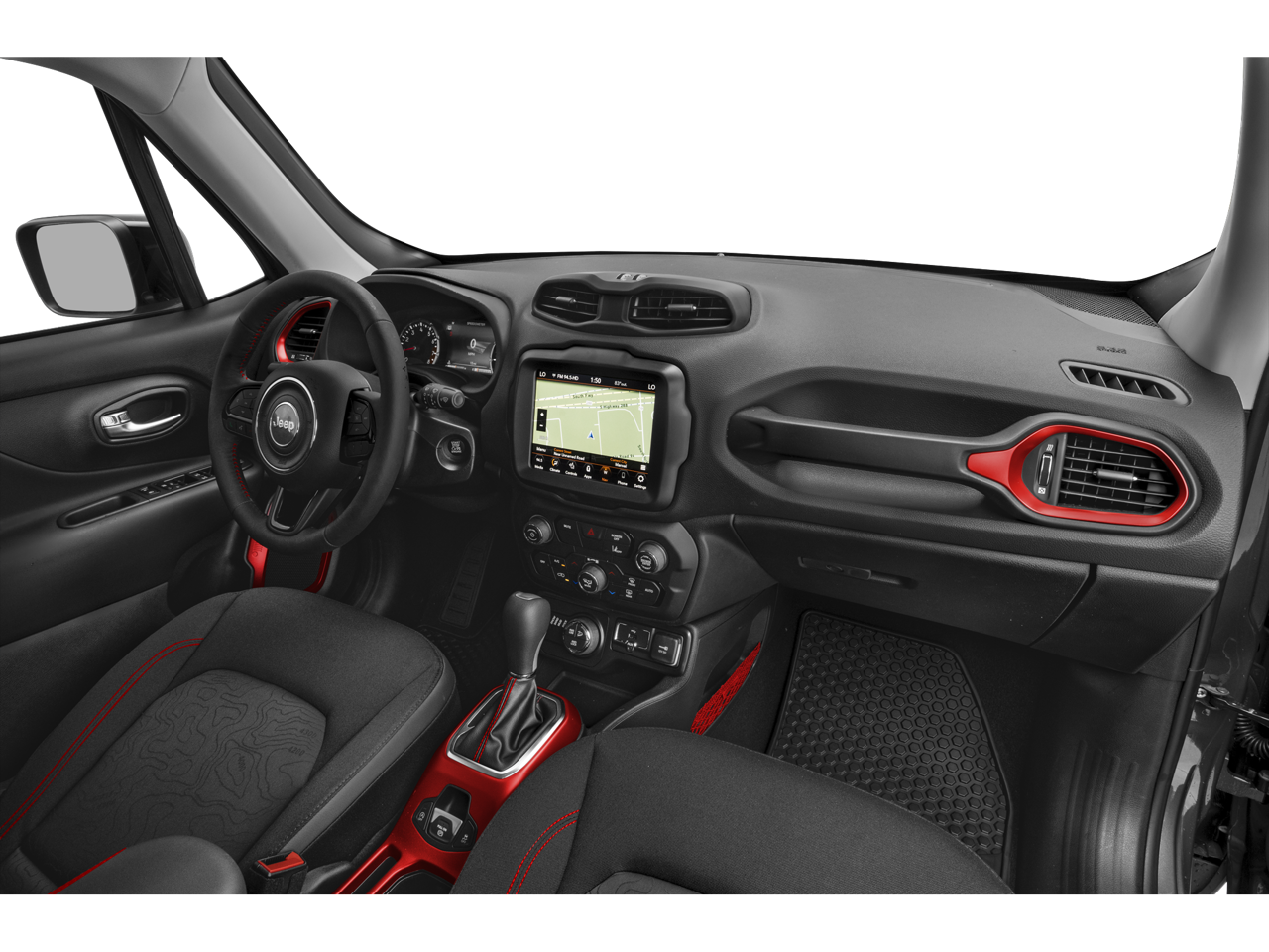 Navigation, Back-Up Camera, Satellite Radio, iPod/MP3 Input, Onboard Communications System, Aluminum Wheels, Remote Engine Start, Dual Zone A/C, Lane Keeping Assist, Cross-Traffic Alert, Blind Spot Monitor, WiFi Hotspot, Smart Device Integration. Jeep Trailhawk with Alpine White Clearcoat exterior and Black interior features a 4 Cylinder Engine with 177 HP at 5750 RPM*.