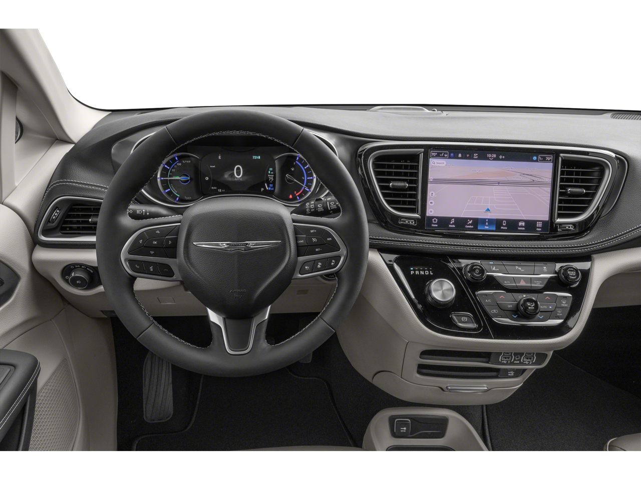 Third Row Seat, Navigation, Quad Bucket Seats, Power Liftgate, Rear Air, Heated Driver Seat, Back-Up Camera, Satellite Radio, iPod/MP3 Input, Onboard Communications System, Aluminum Wheels, Remote Engine Start, Dual Zone A/C, Power Fourth Passenger Door, Smart Device Integration Chrysler Hybrid S Appearance Pkg with Bright White Clearcoat exterior and Black interior features a V6 Cylinder Engine.
