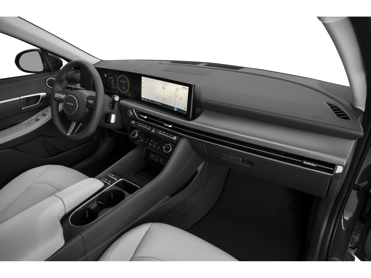 - Radio: AM/FM/HD/SiriusXM -inc: 12.3" high-resolution touchscreen, 6 speakers (2 front door mounted speakers, 2 tweeters and 2 rear speakers), smartphone integration, Bluetooth®, Over-The-Air updates, USB connectivity, Blue Link connected car, Android Auto/Apple CarPlay capability (wireless and wired) and shark fin design antenna w/SiriusXM reception