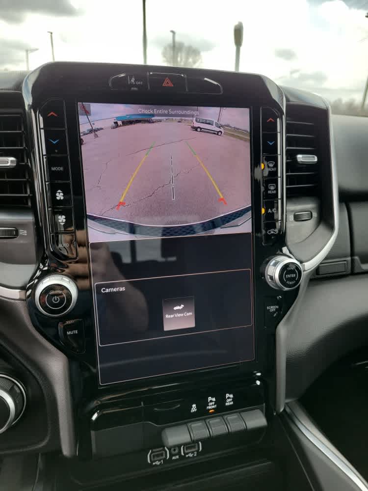 Back-Up Camera, iPod/MP3 Input, Trailer Hitch, Aluminum Wheels, Remote Engine Start, Lane Keeping Assist, Blind Spot Monitor, WiFi Hotspot, Cross-Traffic Alert. Ram Big Horn with Bright White Clearcoat exterior and Black interior features a Straight 6 Cylinder Engine with 305 HP at 6400 RPM*.